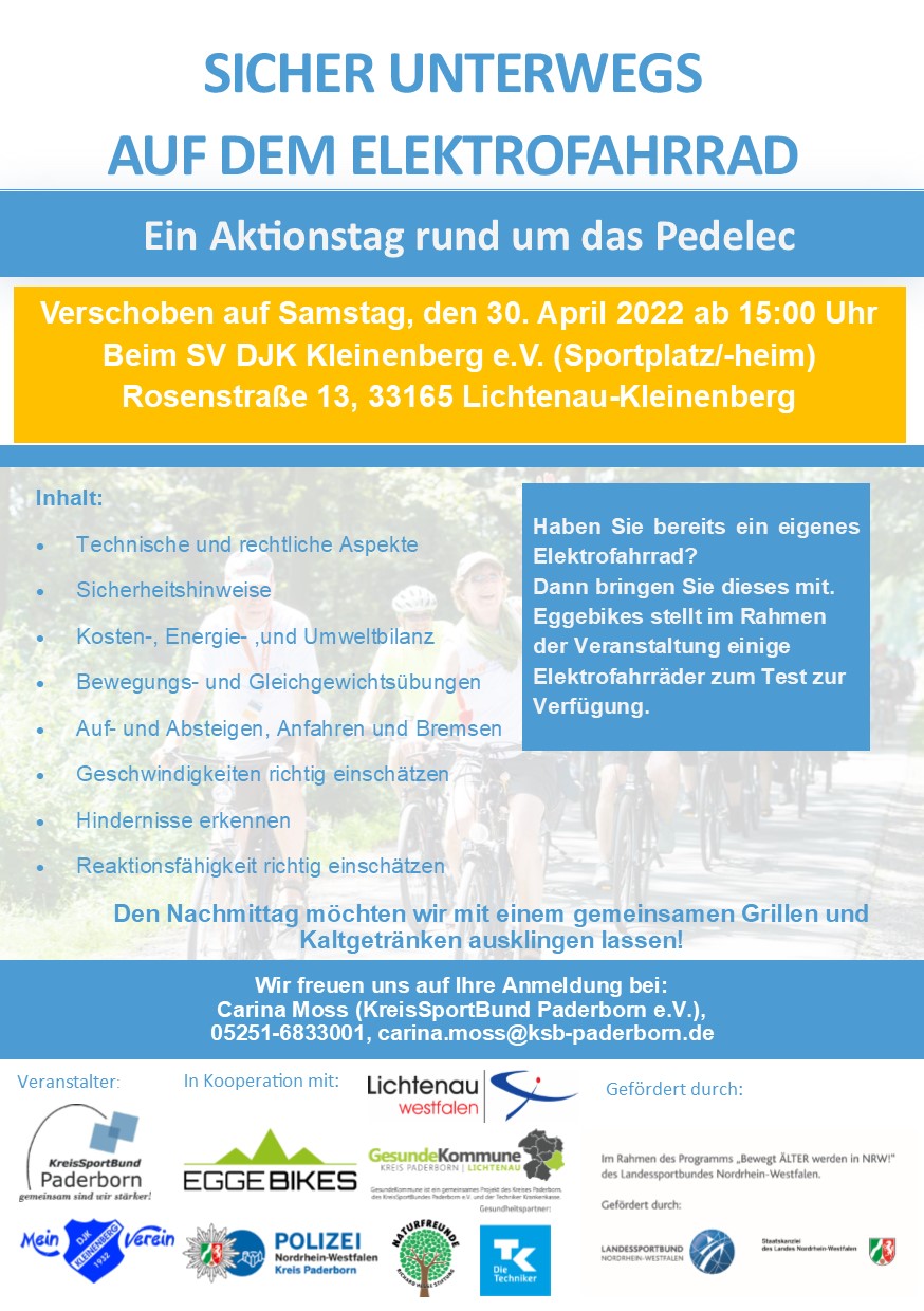 „Ich freue mich, dass wir als Gemeinde Teil des Projektes „Gesunde Kommune“ sind und unsere Bürgerinnen und Bürger in Bewegung bringen“, so Bürgermeister Uwe Gockel. Hans-Norbert Blome von der Techniker Krankenkasse ergänzt: „Die vorherigen Veranstaltungen zeigen, dass es sich um ein tolles Event handelt und sowohl Interessierte als auch Übungsleitungen neues Wissen vermittelt. Gerne unterstützen wir solche Aktionen.“