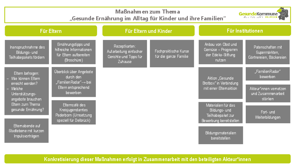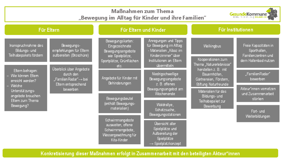 In einem nächsten Schritt werden nun in Zusammenarbeit mit den Akteur*innen erste Maßnahmen für Kinder im Alter von 0 bis 6 Jahren in Delbrück umgesetzt.