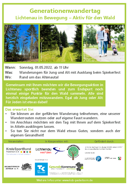 Im Frühjahr dieses Jahres wurde die Generationenrallye „Klein und Groß erleben ein Abenteuer“ erstmalig für die Bürgerinnen und Bürger der Gemeinde Borchen angeboten. Das Bewegungsangebot richtet sich sowohl an Kinder als auch an Erwachsene und wurde in Zusammenarbeit zwischen der Gemeinde Borchen und dem KreisSportBund Paderborn e.V. im Rahmen des Projektes „Gesunde Kommune“ ins Leben gerufen. Aufgrund der großen Nachfrage konnten dank der finanziellen Unterstützung der Bürgerstiftung Borchen und des Bundesprogramms „Integration durch Sport“ neue Exemplare gedruckt werden.