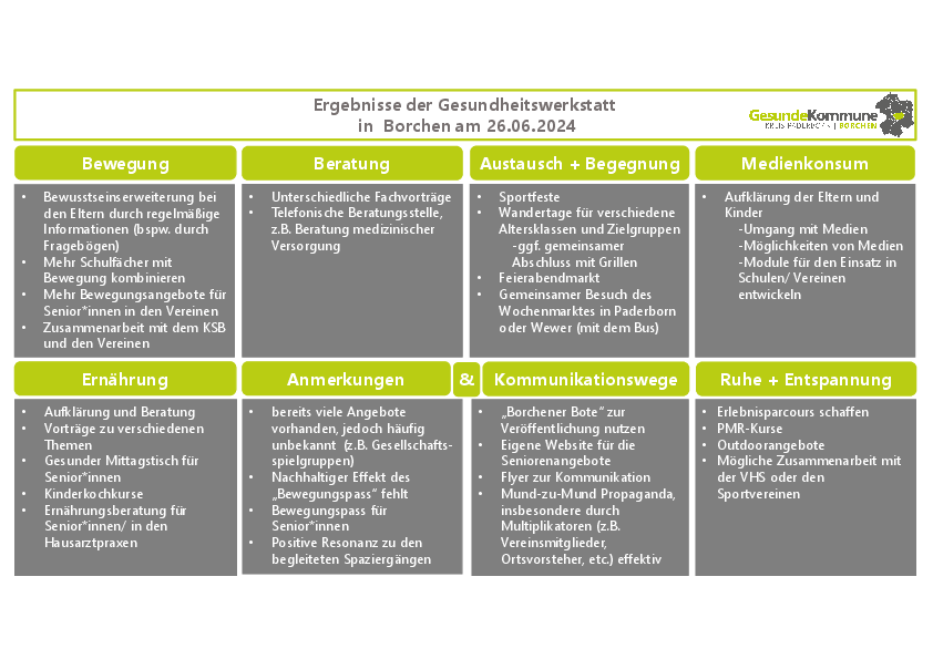 Eine Überblick über die Ergebnisse der Gesundheitswerkstätten findest du hier: