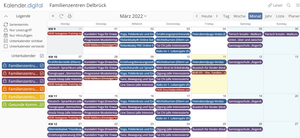 Das Projektteam stellte die Idee eines gemeinsamen Veranstaltungskalenders aller Familienzentren in Delbrück vor. Der Kalender soll einen Überblick über die Veranstaltungen und Angebote der einzelnen Einrichtungen bieten und kann außerdem als Planungstool für gemeinsame Aktionen dienen. Darüber hinaus ist eine Veröffentlichung für Eltern und Bürger*innen in Delbrück z. B. in einem PDF-Format möglich. Die Idee wurde von allen Teilnehmenden begrüßt, sodass das Projektteam im Anschluss eine erste Testphase startete. Diese soll im Jahr 2022 angepasst und weiter untersucht werden.
