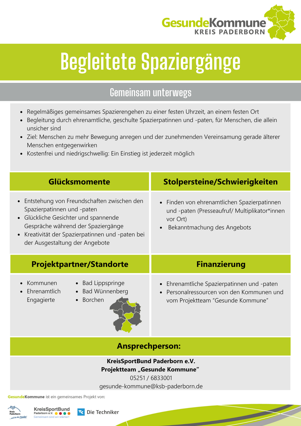 Gemeinsam mit der Stadt Bad Lippspringe bietet das Projektteam die begleiteten Spaziergänge an, um die Menschen in Bad Lippspringe zu motivieren, aktiv zu werden und sich zu bewegen. Durch dieses Angebot möchten sie möglichst viele Menschen dazu ermutigen, an den Spaziergängen teilzunehmen und die Natur zu genießen.